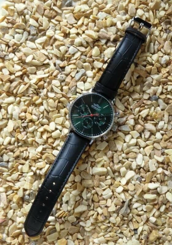 Stijlvol herenhorloge,dit horloge staat prachtig om je pols,een kleine kans dat jij nu te laat komt!De band is van leer,en de kast van roestvrij staal en 43mm.Word geleverd in een mooie verpakking,leuk om zelf te houden of als cadeau te geven.