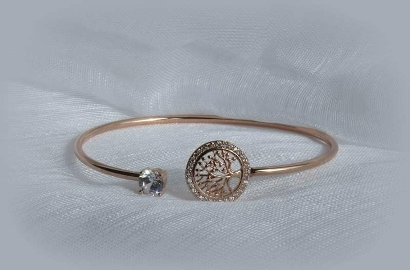 Levensboom verstelbare armband met zirkoon steen(6mm)kleur rose gold. Lengte armband 18 cm.