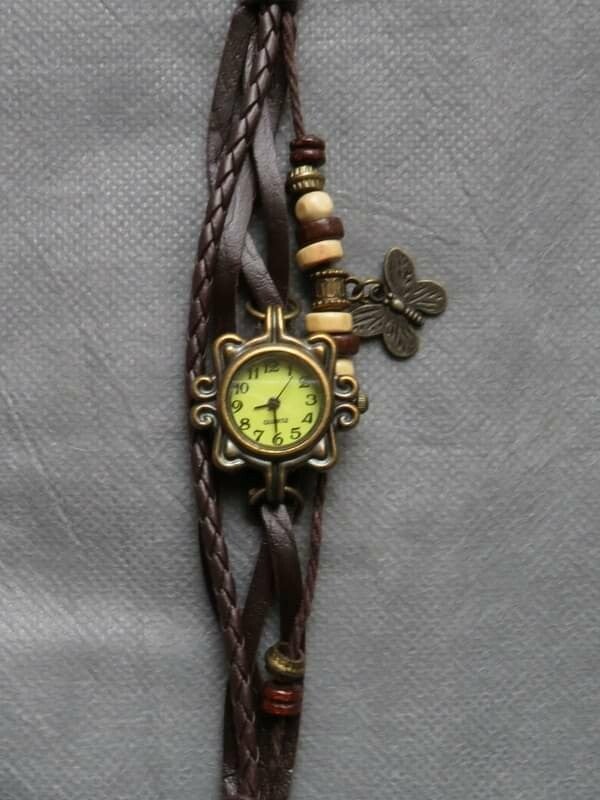 Prachtige Vintage lederen vlinder dames band horloge's, voor een smalle pols.In de kleur bruin.
