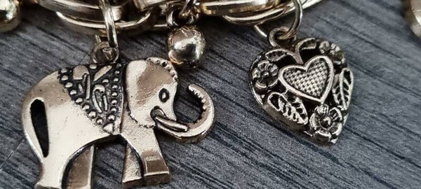 Vintage armband,ook leuk om als enkelband te dragen,leuke olifanten bedeltjes en hartjes in de kleur goud.